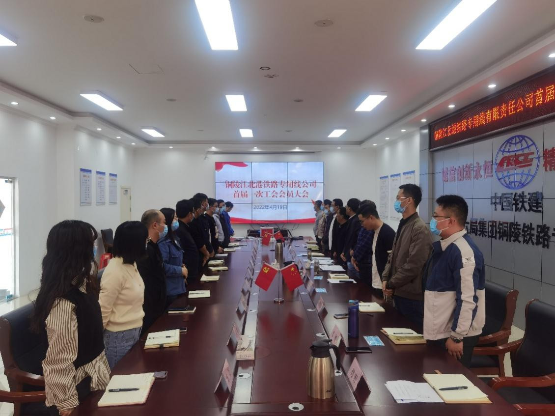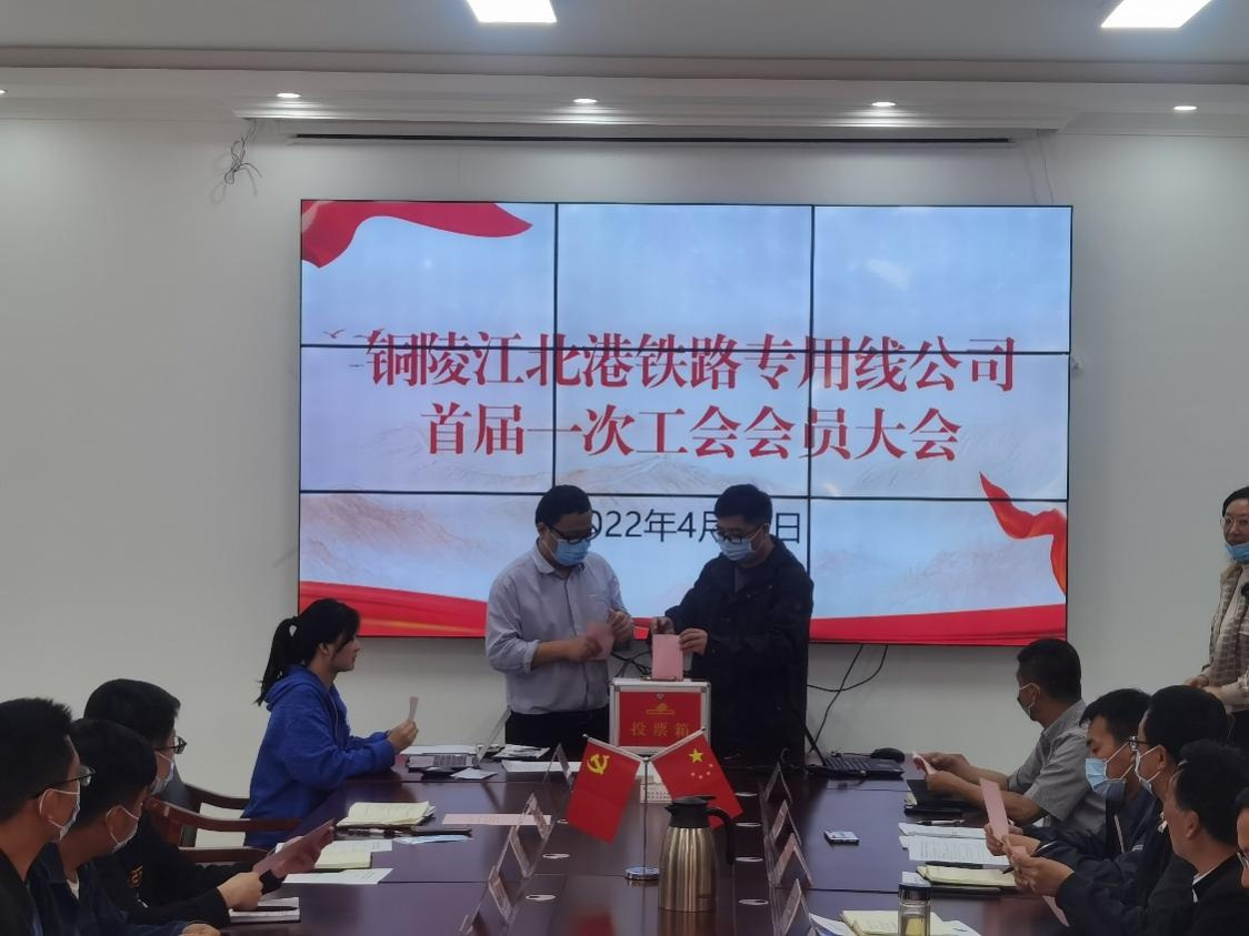 4月19日下午,銅陵江北港鐵路專(zhuān)用線(xiàn)有限責(zé)任公司首屆一次會(huì)員大會(huì)隆重召開(kāi),標(biāo)志著銅陵江北港鐵路專(zhuān)用線(xiàn)有限責(zé)任公司工會(huì)正式成立。