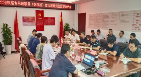 7月27日上午,銅陵市鐵路辦組織召開江北港鐵路專用線(銅陵段)項(xiàng)目質(zhì)量安全監(jiān)管對接會(huì),銅陵市發(fā)改委副主任、鐵路辦主任謝永明主持會(huì)議。會(huì)上,江北港鐵路專用線公司董事長、總經(jīng)理張葉來代表建設(shè)單位詳細(xì)介紹了項(xiàng)目基本情況、目前施工進(jìn)展情況、質(zhì)量安全管理工作開展情況及下步工作安排,質(zhì)量安全監(jiān)督管理機(jī)構(gòu)(上海建科)就監(jiān)督工作安排、監(jiān)督要點(diǎn)進(jìn)行了交底,鐵路辦提出相關(guān)工作要求。項(xiàng)目建設(shè)、施工、設(shè)計(jì)、監(jiān)理、第三方檢測單位主要負(fù)責(zé)人及相關(guān)人員參加會(huì)議。本次會(huì)議的召開,標(biāo)志著銅陵市政府質(zhì)量安全監(jiān)督組正式對江北港鐵路專用線項(xiàng)目(銅陵段)開展監(jiān)督工作。