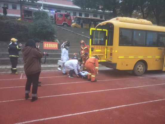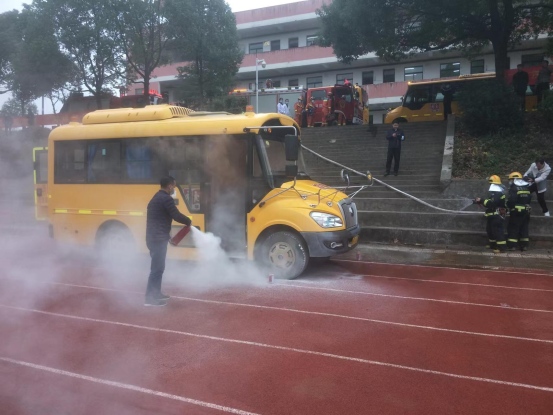 本次演練活動(dòng)按照預(yù)先既定方案,現(xiàn)場(chǎng)演練了校車在行駛中發(fā)生突發(fā)火災(zāi),如何正確應(yīng)急疏散救援的全過程。演練過程中,驚險(xiǎn)緊張、情境真實(shí)、救援有序,給廣大師生和工作人員上了一堂生動(dòng)的安全教育課,達(dá)到了預(yù)期效果。隨后開展了現(xiàn)場(chǎng)教學(xué),消防官兵教導(dǎo)師生如何正確使用滅火器,并進(jìn)行了現(xiàn)場(chǎng)使用滅火器滅火體驗(yàn),場(chǎng)面生動(dòng)、效果顯著。整個(gè)演練活動(dòng)組織井然有序,項(xiàng)目演練真實(shí)實(shí)際,安全預(yù)防意義重大,取得了圓滿成功。