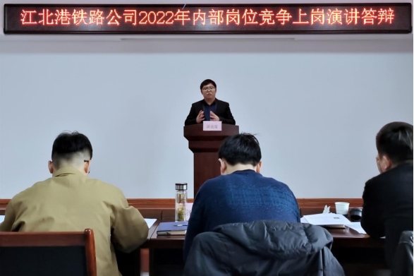 競崗會上,競崗者圍繞對競爭崗位的認知、工作思路及目標設(shè)想、團隊協(xié)作和管理等幾方面逐一進行慷慨激昂的演講,或引用數(shù)據(jù),講述過往業(yè)績和故事;或聯(lián)系自身,將個人優(yōu)勢與崗位工作緊密結(jié)合談發(fā)展。在競崗演講過程中,競崗者從容自信演講,沉著應(yīng)對答辯,考驗了競崗人員業(yè)務(wù)知識的日常積累和隨機應(yīng)變能力,充分展現(xiàn)了江北港鐵路公司職工朝氣蓬勃、銳意進取、敢于擔當?shù)牧己镁耧L貌,整個過程緊張有序,精彩紛呈。