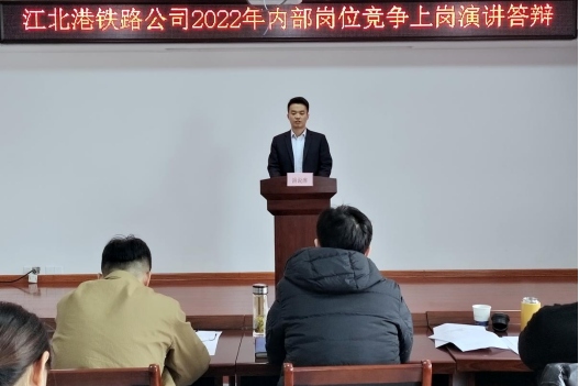 為貫徹落實國企改革三年行動,適應(yīng)現(xiàn)代化企業(yè)發(fā)展需求,加強人才隊伍建設(shè),建立良好的人才競爭機制和使用機制,最大限度調(diào)動公司職工的工作積極性和主動性,把“想干事、能干事、干成事”的職工選任到合適的崗位,12月10日,江北港鐵路專用線公司開展了部門主管等崗位內(nèi)部競崗演講答辯會,銅陵交投集團合約部負責人黃帥,綜合部負責人崔蒙,以及江北港鐵路專用線公司工會主席、財務(wù)部負責人陳卓,董事會秘書、綜合部負責人汪浩太,工程部負責人茍侗組成評委團,15名競聘人員參加了競崗演講答辯。公司董事長、總經(jīng)理張葉來,副總經(jīng)理祖江陽、總經(jīng)理助理繆振富出席競崗會,公司專職紀檢委員王卓全程監(jiān)督。