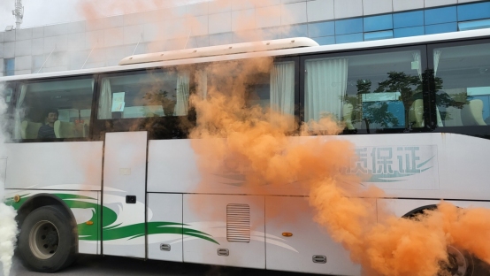 “一切行動聽指揮”,演練參與人員嚴(yán)格遵守應(yīng)急演練工作指令,相互協(xié)同配合。52名參與演練人員從火警警報響起,到司乘人員全部從車輛內(nèi)撤離到安全區(qū)域,用時2分16秒。