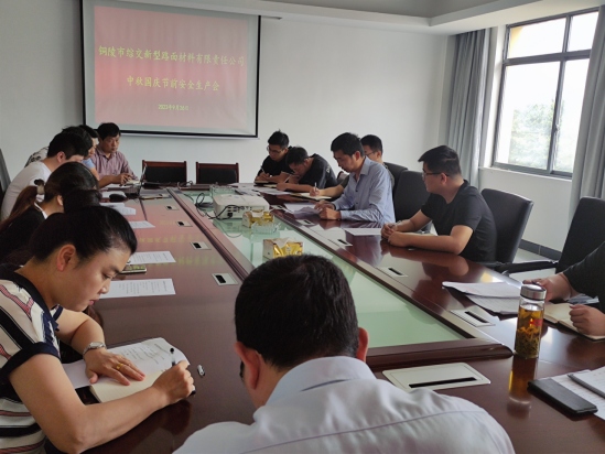 為切實做好節(jié)日前后安全防范工作,嚴防各類事故發(fā)生,9月26日上午,綜交新型路面材料公司組織召開中秋、國慶節(jié)前安全生產(chǎn)會,董事長張健、副總經(jīng)理湯建東、總經(jīng)理助理丁愛學及公司各部門相關人員參加會議,會議由總經(jīng)理章偉主持。