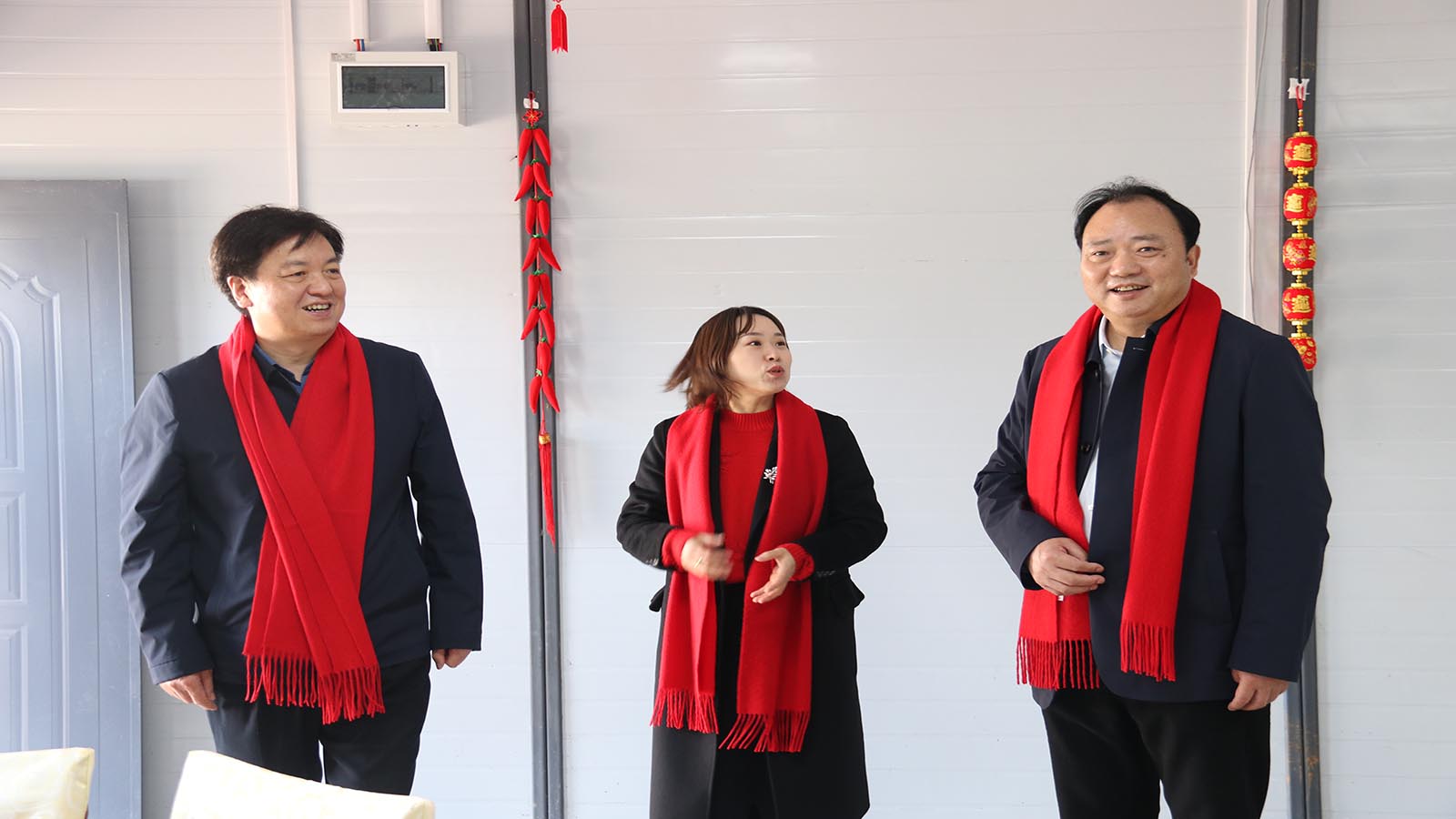 黃學(xué)龍一行走進(jìn)項(xiàng)目經(jīng)理部辦公生活場(chǎng)所,與職工傾心交談,認(rèn)真聽取項(xiàng)目建設(shè)情況,關(guān)切詢問他們老家情況和春節(jié)安排,同時(shí)送上水果等慰問品。