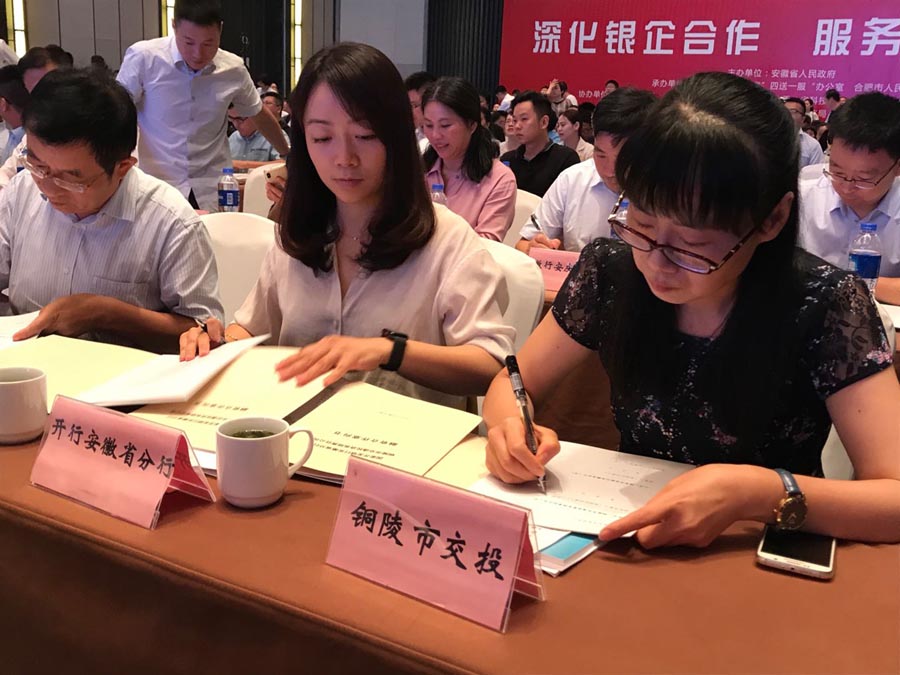 8月9日上午,全省銀企對(duì)接會(huì)在合肥召開。公司黨工委委員、副總經(jīng)理范美霞代表公司參加會(huì)議并與國開行安徽省分行簽訂G3銅陵長(zhǎng)江公鐵大橋項(xiàng)目意向書。