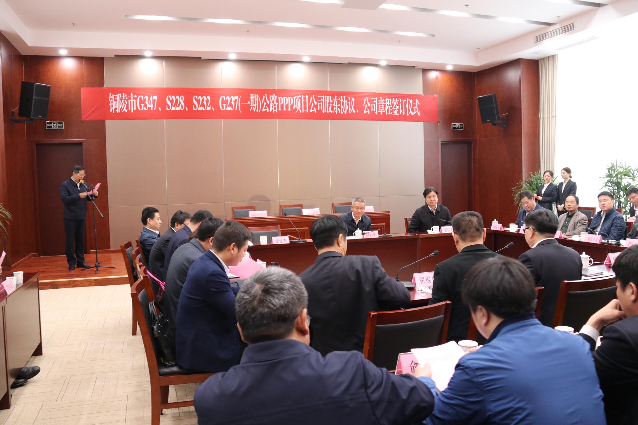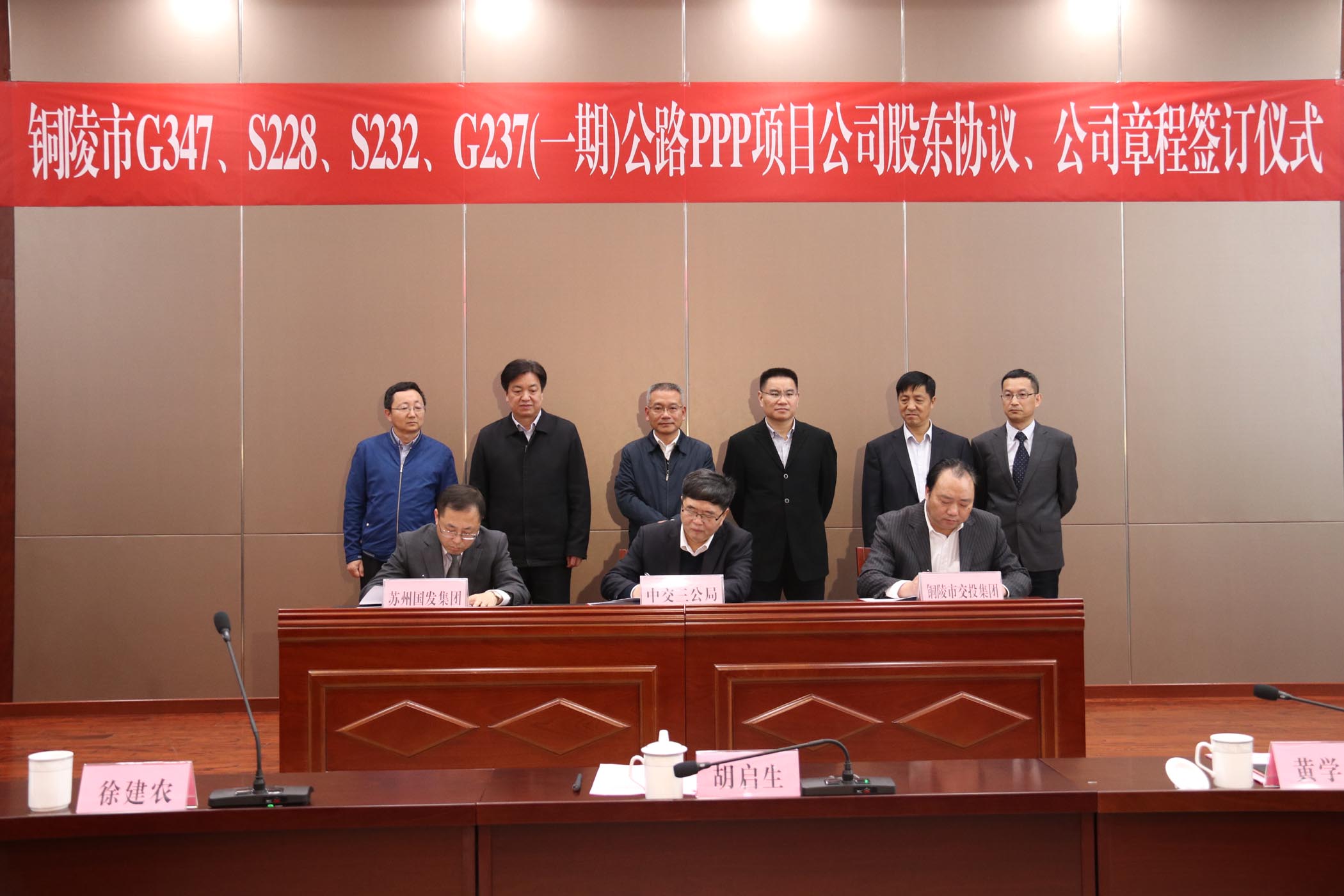 3月28日上午,我市國道347、省道228、省道232、國道237(一期)公路PPP項目公司股東協(xié)議及公司章程簽訂儀式在市綜合交通投資集團有限公司舉行。市委副書記、市長胡啟生,中交第三公路工程局有限公司黨委書記、董事長黃臘泉,蘇州國發(fā)集團總裁翟俊生,副市長黃學龍等現(xiàn)場見證。黃臘泉、翟俊生,市交投集團董事長何成龍簽訂四條公路PPP項目公司股東協(xié)議及公司章程。
