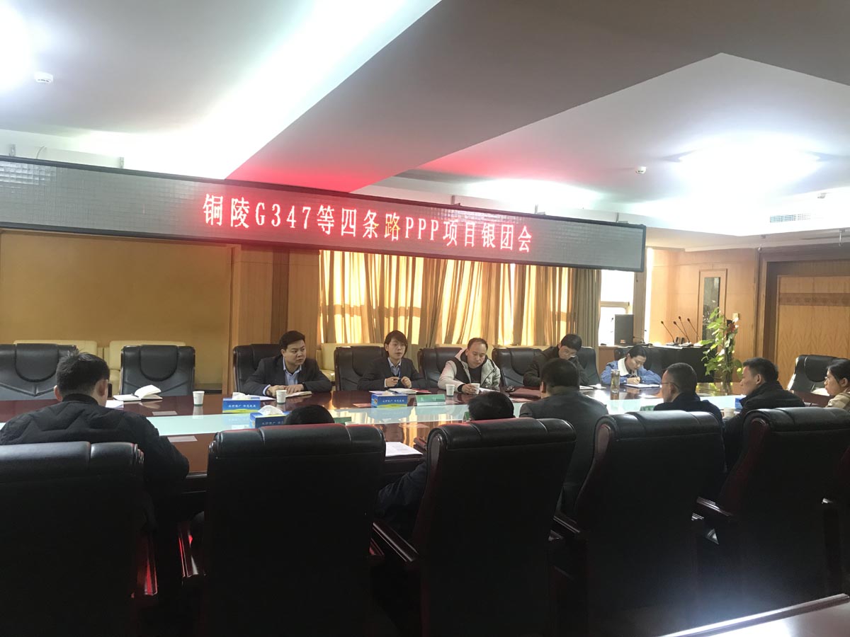 12月4日上午,G347ppp項(xiàng)目公司召開G347等四條路PPP項(xiàng)目銀團(tuán)會(huì)。中國(guó)農(nóng)業(yè)銀行銅陵分行、中國(guó)建設(shè)銀行銅陵分行、中國(guó)銀行銅陵分行、中國(guó)工商銀行銅陵分行及交通銀行銅陵分行等6家銀行參加對(duì)接會(huì)。