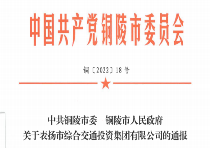 中共銅陵市委 銅陵市人民政府關(guān)于表揚 市綜合交通投資集團有限公司的通報