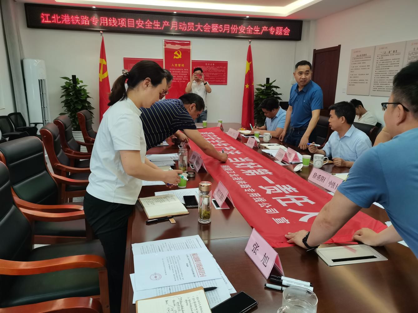隨后,全體職工在安全生產(chǎn)宣誓條幅上簽字,切實(shí)提升安全思想意識(shí)。