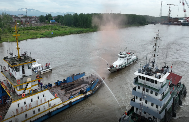(六)6月21日上午,在G3銅陵長江公鐵大橋3#墩上游施工水域開展水上聯(lián)合應(yīng)急演練。銅陵長江公鐵大橋投資有限公司、銅陵海事處、G3橋項目辦、項目部、監(jiān)理等單位相關(guān)人員參與演練。