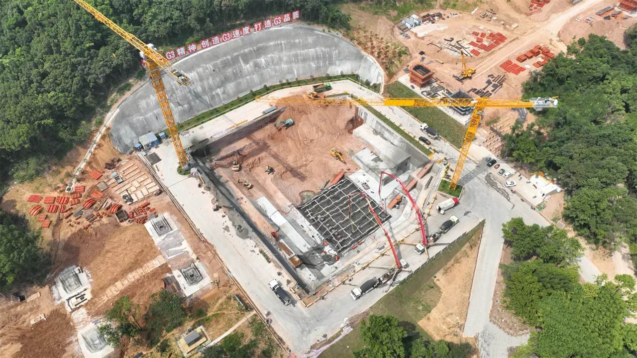 此外,經(jīng)過近4個月的不斷努力,7月18日,南錨碇最大方量土方開挖已基本完成,首次成功澆筑基礎(chǔ)混凝土。