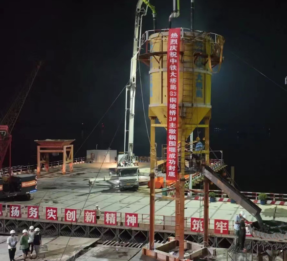 8月10日凌晨5時(shí),經(jīng)過數(shù)個(gè)日夜的連續(xù)澆筑,G3銅陵長江公鐵大橋3號(hào)主墩鋼圍堰水下封底順利完成,標(biāo)志著大橋北岸主墩即將進(jìn)入承臺(tái)施工階段,為后續(xù)塔柱及上部結(jié)構(gòu)施工奠定了堅(jiān)實(shí)的基礎(chǔ)。