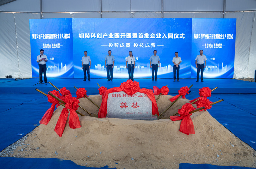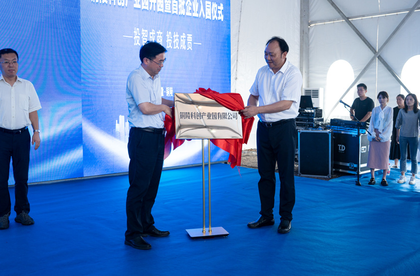 8月28日上午,銅陵科創(chuàng)產(chǎn)業(yè)園開(kāi)園暨首批企業(yè)入園儀式舉行。市委書(shū)記丁純出席儀式并宣布開(kāi)園。市委副書(shū)記、市長(zhǎng)孔濤致辭。市委常委、常務(wù)副市長(zhǎng)何田主持儀式。市領(lǐng)導(dǎo)馬軍、楊如松等出席。義安區(qū)委書(shū)記姚貴平與集團(tuán)公司黨委書(shū)記、董事長(zhǎng)何成龍共同為銅陵科創(chuàng)產(chǎn)業(yè)園有限公司揭牌。