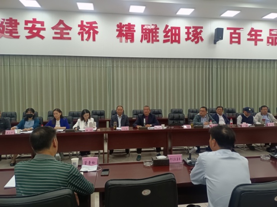 王友貴一行首先前往G3橋4號(hào)主墩現(xiàn)場(chǎng)觀摩了施工情況,對(duì)項(xiàng)目概況、施工工藝、安全保障、環(huán)境保護(hù)、防疫工作進(jìn)行了深入了解,隨后前往G3橋項(xiàng)目部會(huì)議室觀看了G3橋宣傳片;聽取了市交通運(yùn)輸局關(guān)于今年以來交通項(xiàng)目建設(shè)情況的匯報(bào)并就G3橋建設(shè)及銅陵交通建設(shè)展開了座談交流。