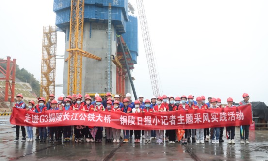 10月27日上午,銅陵日報小記者在細(xì)雨微朦中走進G3銅陵長江公鐵大橋建設(shè)現(xiàn)場,舉行了一場題為“強國復(fù)興有我”的主題采風(fēng)宣傳教育活動!中鐵大橋局G3銅陵長江公鐵大橋項目部黨工委書記張馳,銅陵日報社副總編季學(xué)明,市交投集團黨委委員、副總經(jīng)理湯世才參加活動。