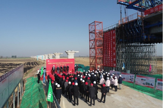 12月15日上午,銅陵港江北港區(qū)鐵路專用線工程全線首座連續(xù)梁合龍儀式暨施工現場觀摩會在施工現場舉行。集團公司黨委書記、董事長何成龍,黨委副書記、總經理周文勝,黨委委員、副總經理黃勇,中鐵建長江(銅陵)港鐵建設運營有限公司董事長徐重陽,監(jiān)理、設計等單位負責人及相關人員出席了本次活動。銅陵江北港鐵路專用線公司董事長、總經理張葉來主持合龍儀式,市鐵路辦副主任王濱受邀參加活動并講話。