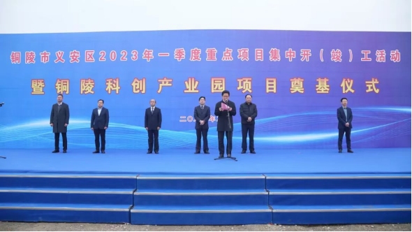 2月18日上午,銅陵科創(chuàng)產(chǎn)業(yè)園暨義安區(qū)2023年一季度重點(diǎn)項(xiàng)目集中開(竣)工活動(dòng)在銅陵科創(chuàng)產(chǎn)業(yè)園起步區(qū)(一期)現(xiàn)場隆重舉行,市人大常委會(huì)副主任、義安區(qū)委書記姚貴平,義安區(qū)委、區(qū)人大、區(qū)政府等負(fù)責(zé)同志出席活動(dòng)。集團(tuán)公司黨委書記、董事長何成龍應(yīng)邀出席活動(dòng)和項(xiàng)目奠基儀式,并在活動(dòng)現(xiàn)場致辭。集團(tuán)公司董秘、銅陵科創(chuàng)產(chǎn)業(yè)園有限公司董事長、總經(jīng)理凌昌盛,銅陵科創(chuàng)產(chǎn)業(yè)園有限公司、監(jiān)理單位、施工單位等相關(guān)負(fù)責(zé)同志參加活動(dòng)。