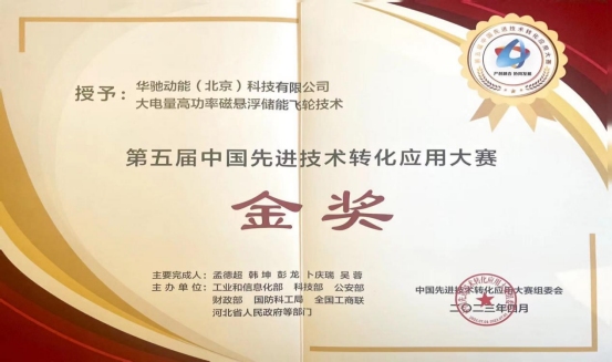 2023年4月6日,我司銅交投海貝科創(chuàng)股權(quán)基金所投華馳動(dòng)能項(xiàng)目,在河北省保定市舉辦的第五屆中國先進(jìn)技術(shù)轉(zhuǎn)化應(yīng)用大賽(以下簡(jiǎn)稱本屆大賽)中,以“大電量高功率磁懸浮儲(chǔ)能飛輪技術(shù)”,成功斬獲新能源與節(jié)能降碳技術(shù)產(chǎn)業(yè)化類金獎(jiǎng)。該項(xiàng)目經(jīng)歷三個(gè)月激烈角逐,從 1100個(gè)參賽項(xiàng)目中脫穎而出,最終在本屆大賽十五個(gè)金獎(jiǎng)中斬獲一金。
