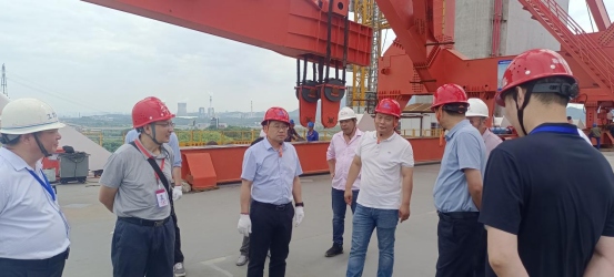 龍道寧一行先后前往G3公鐵橋項(xiàng)目起點(diǎn)、北岸智慧梁場(chǎng)、4號(hào)主墩、南北錨碇施工現(xiàn)場(chǎng)及項(xiàng)目終點(diǎn),實(shí)地查看了施工進(jìn)度情況,詳細(xì)了解了項(xiàng)目概況及施工推進(jìn)過程中的重難點(diǎn),并現(xiàn)場(chǎng)給與指導(dǎo)意見。