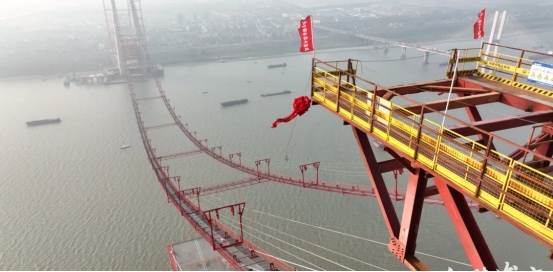 11月30日,由市交投集團(tuán)投資建設(shè)、中鐵大橋局承建的G3銅陵長(zhǎng)江公鐵大橋最后一個(gè)貓道門架安裝完畢,為大橋貓道拼上最后一塊“拼圖”。在陽(yáng)光的照耀下,貓道懸于空中,將兩岸錨碇、主塔相連,如同色彩鮮艷的“空中走廊”。不久后,大橋首根纜索就能順著牽引繩飛渡長(zhǎng)江。