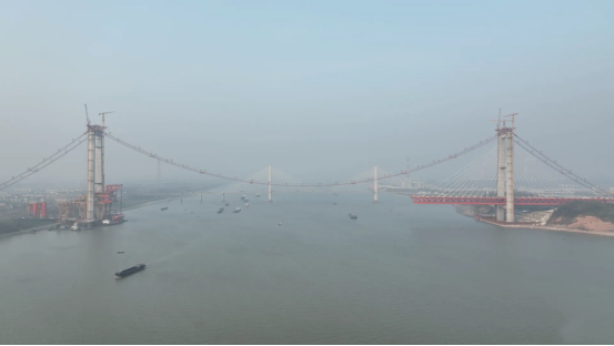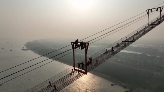 自10月20日先導(dǎo)索過(guò)江,到11月30日最后一個(gè)門架安裝完成,大橋貓道在45天內(nèi)安全完工,為大橋纜索系統(tǒng)的施工創(chuàng)造了良好條件。未來(lái),一股股纜索將在其上完成“穿針引線”,為大橋主梁過(guò)江提供關(guān)鍵支撐。