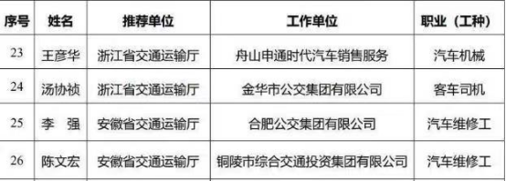 近日,由交通運(yùn)輸部組織評選的“2023年度全國交通技術(shù)能手”評選結(jié)果正式公布,此次共有236人獲此殊榮,鐵路領(lǐng)域有20人,公路領(lǐng)域52人,水運(yùn)領(lǐng)域56人,道路運(yùn)輸領(lǐng)域63人,民航領(lǐng)域20人,郵政領(lǐng)域25人上榜。其中,安徽省公路領(lǐng)域1人、水運(yùn)領(lǐng)域1人、道路運(yùn)輸領(lǐng)域2人,共有4人獲此殊榮,我司陳文宏榜上有名,成為道路運(yùn)輸領(lǐng)域安徽省當(dāng)選二人之一,榮獲“全國交通技術(shù)能手”稱號,該獎(jiǎng)項(xiàng)是交通運(yùn)輸行業(yè)高技能人才的最高榮譽(yù)。