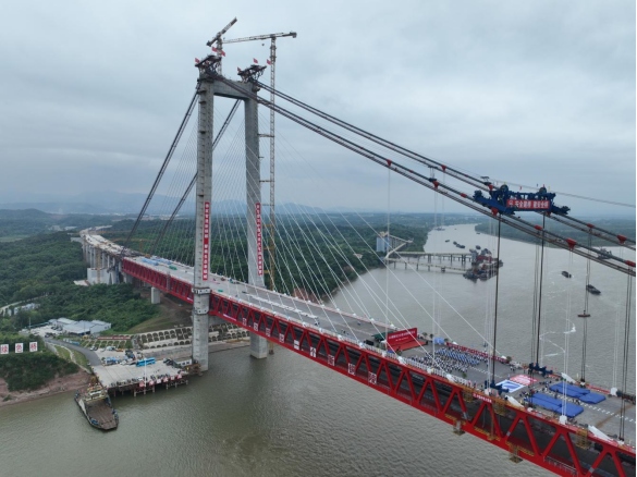 G3銅陵長江公鐵大橋由市綜合交通投資集團(tuán)有限公司投資建設(shè)、中鐵大橋院設(shè)計(jì)、中鐵大橋局施工,于2022年1月正式動(dòng)工建設(shè),是世界首座雙層斜拉-懸索協(xié)作體系大橋,全長11.88公里,主跨988米,具有高速公路、城際鐵路、貨運(yùn)鐵路3種過江功能。大橋建成后,對(duì)于發(fā)揮皖江承東啟西、連接長三角和川渝鄂贛的中樞作用,促進(jìn)區(qū)域交通優(yōu)化發(fā)展、完善過江通道布局具有重要意義。