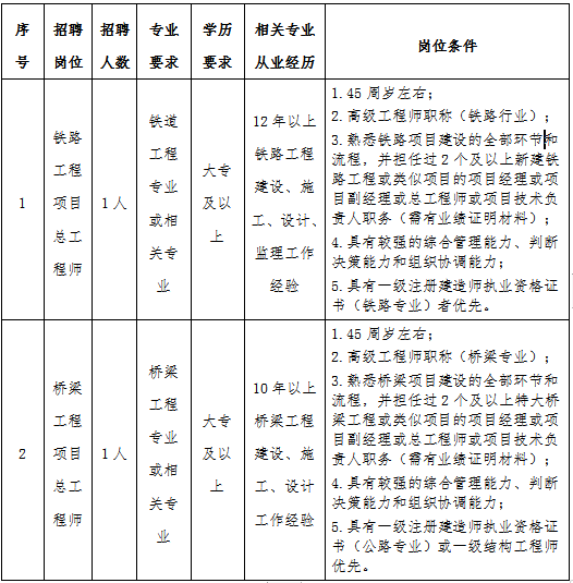 銅陵市綜合交通投資集團(tuán)有限公司因經(jīng)營發(fā)展需要,現(xiàn)面向社會公開招聘2名項目管理人員,現(xiàn)將具體事項公告如下: