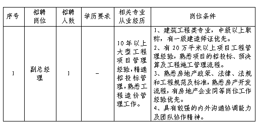 銅陵市綜合交通投資集團(tuán)有限公司司屬全資子公司銅陵交投置業(yè)有限公司因經(jīng)營(yíng)發(fā)展需要,現(xiàn)面向社會(huì)公開(kāi)招聘若干名工作人員,現(xiàn)將具體事項(xiàng)公告如下: