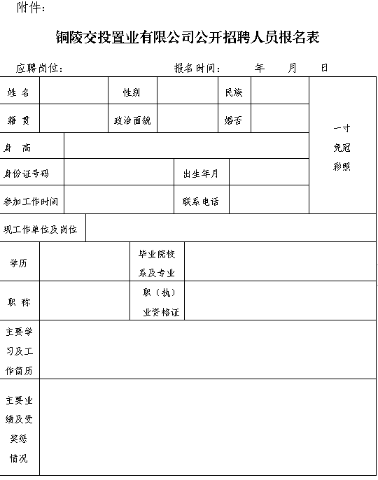 ?附件:銅陵交投置業(yè)有限公司公開(kāi)招聘人員報(bào)名表
