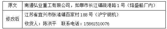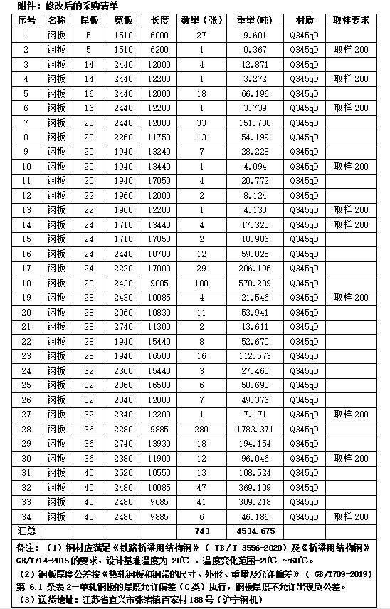 2、招標(biāo)文件中關(guān)于本次采購的鋼板收貨地址修改: