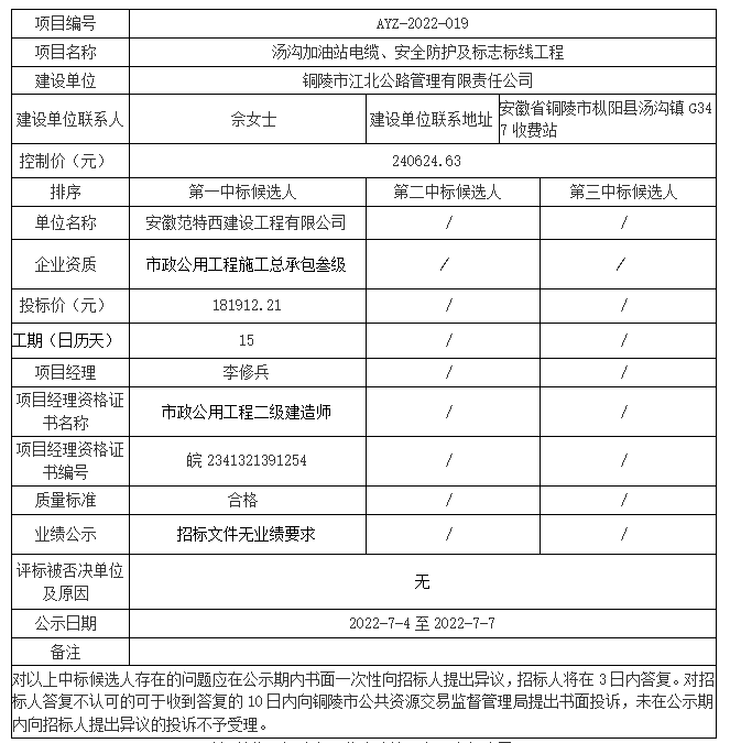建設(shè)單位聯(lián)系地址:安徽省銅陵市樅陽(yáng)縣湯溝鎮(zhèn)G347收費(fèi)站