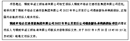 2.項(xiàng)目名稱:銅陵市綜合交通投資集團(tuán)有限公司2022年非公開(kāi)發(fā)行公司債券服務(wù)承銷商招標(biāo)項(xiàng)目
