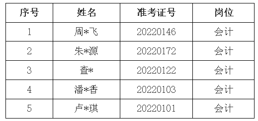 根據(jù)2022年7月25日發(fā)布的《銅陵市綜合交通投資集團(tuán)有限公司公開招聘人員公告》規(guī)定,現(xiàn)將銅陵交投集團(tuán)2022年公開招聘的會計崗位擬錄用人員予以公示,名單如下: