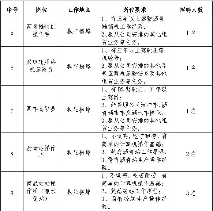 銅陵市綜交新型路面材料有限責(zé)任公司人員招聘明細(xì)表