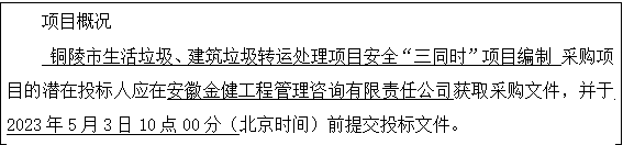 項(xiàng)目名稱:銅陵市生活垃圾、建筑垃圾轉(zhuǎn)運(yùn)處理項(xiàng)目安全“三同時(shí)”項(xiàng)目編制