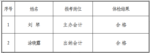根據(jù)《銅陵市交通投資有限責任公司招聘人員公告》,集團公司綜合部于2018年12月24日組織報考出納會計、主辦會計職位的考生參加體檢,現(xiàn)將相關體檢結(jié)果向社會進行公示: