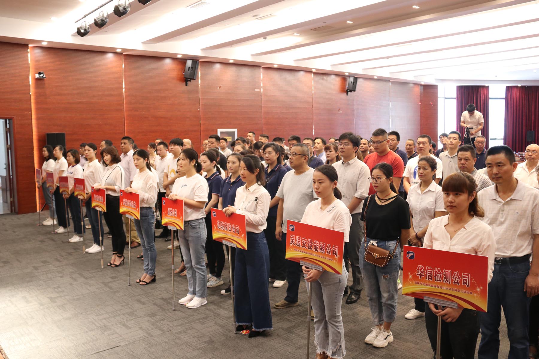 9月8日上午,交投公司系統(tǒng)2018年職工運動會開幕式在機關(guān)四樓大會議室舉行。公司黨工委班子成員出席開幕式活動,黨工委書記、董事長何成龍致辭,綜合部長、工會副主席凌昌盛主持,公司機關(guān)、引江濟淮銅陵公司、通悅公司、通暢商貿(mào)、通馳商貿(mào)、交投靈通國貿(mào)公司、靈通交投能源公司、藍頓檢測公司、華信檢測公司、華越工程公司等單位的代表隊近110人參加開幕式。