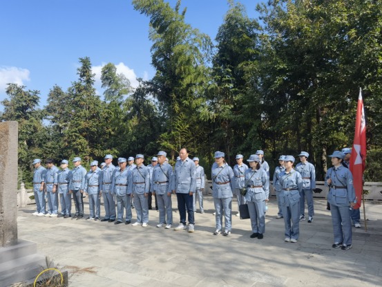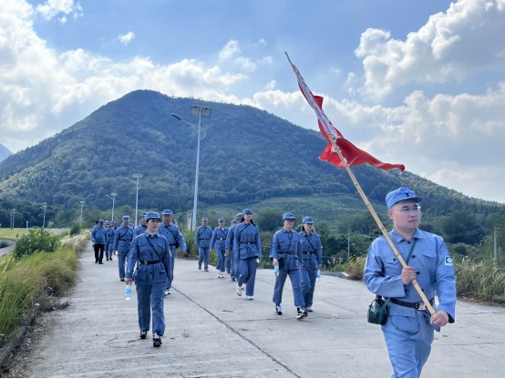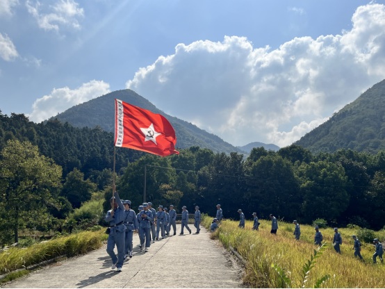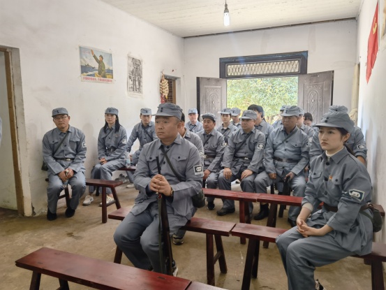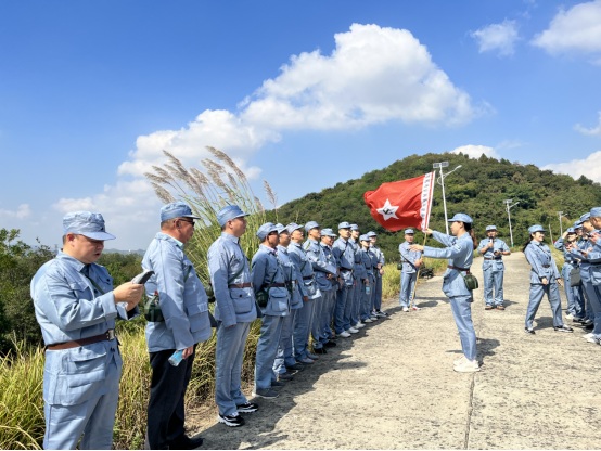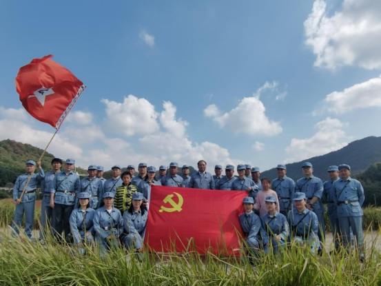 活動(dòng)中,大家首先觀看了《渡江偵察記》節(jié)選片段,重溫了那段革命戰(zhàn)爭場景,回顧了劉四姐為革命事業(yè)甘于奉獻(xiàn)的愛國精神。隨后,大家換上新四軍軍服,就地開啟新四軍紅色文化體驗(yàn)之旅,重溫紅色記憶。爾后大家齊唱一首革命歌曲《沒有共產(chǎn)黨就沒有新中國》;重走一段新四軍的小路,山路高低不平,少數(shù)黨員同志能夠克服困難,堅(jiān)持走了5公里;聽一段新四軍故事,講解員講述劉四姐傳奇而短暫的感人故事;吃一頓新四軍飯,憶苦思甜,吃著紅薯,感受當(dāng)年新四軍為新中國解放事業(yè)作出的巨大貢獻(xiàn)。
