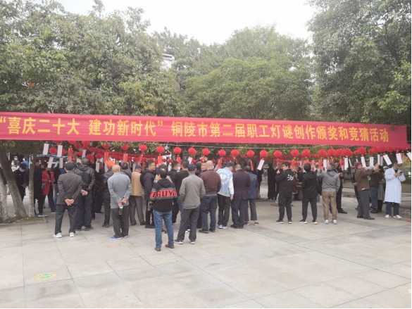 組織部分職工參加由市總工會舉辦的“喜慶二十大 建功新時代”燈謎競猜活動。當(dāng)天活動現(xiàn)場,人頭攢動,四百余條五顏六色的“燈謎”懸掛當(dāng)空,熱鬧非凡。大家被各式各樣的燈謎深深吸引,整個競猜現(xiàn)場喜慶有序,不時傳來陣陣歡聲笑語,氣氛歡樂祥和。本次猜燈謎活動融政治性、趣味性于一體,寓教于樂,既弘揚(yáng)了中華民族的傳統(tǒng)文化,又豐富了職工業(yè)余文化生活。
