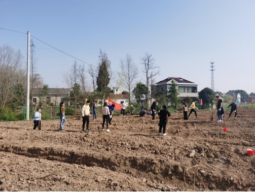 活動中,在村農(nóng)業(yè)合作社的專業(yè)種植人員指導下,大家對如何正確種植黃桃有了初步了解,紛紛拿起鐵鍬等工具投入到種植中去。分成三人一組,協(xié)同配合,揮鍬鏟土,扶樹填坑,澆水正苗,每道工序都認真細致。在大家的共同努力下,新苗在村道兩旁構成了一道靚麗的風景線。